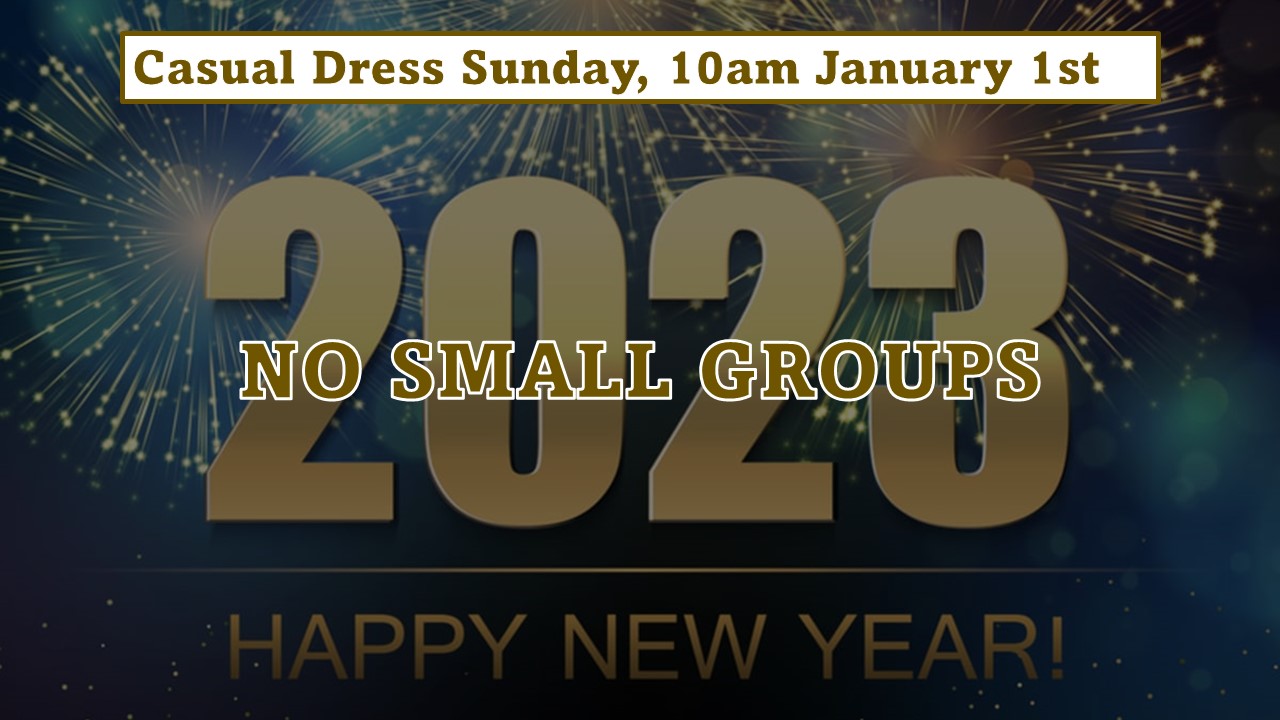 New Year’s Day Service Join us Sunday, January 1 in your casual attire for New Year’s Day Service at 10 am. Small groups will not meet. + Add to Google Calendar + iCal / Outlook export Date Jan 01 2023 Expired! Time 10:00 am Share this event